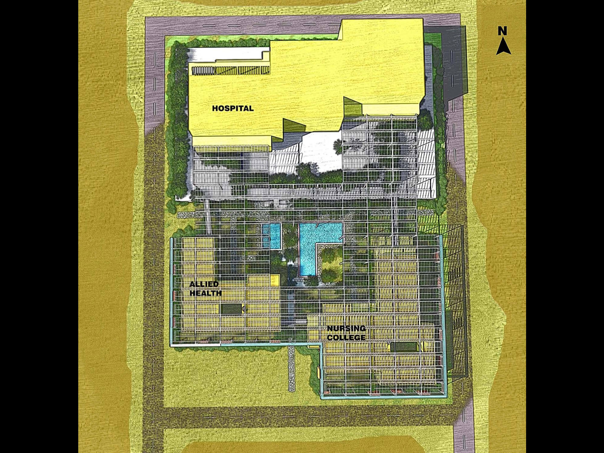 To conceive an Architectural Design of a Health Care Services and Education Facility comprising of a 300 bed general Hospital, a College of Nursing and an Institute for Para -Medical Sciences- a design which is appropriately responsive to the contexts of function, location and climate to achieve an environmentally sustainable and aesthetically appealing design..